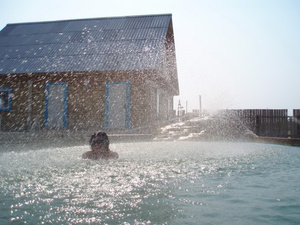 там реальные фонтаны. )))))) и можно пить воду, можно в ней купаться. А горы просто как на этикетке этого самого напитка. Щас фонтана фотку выложу.