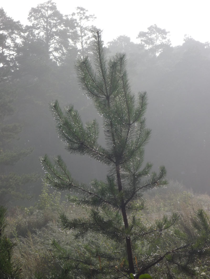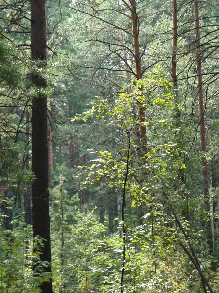 Вот! Картинка моего любимого утра - со смело пробивающимися лучами, с прозрачными паутинками меж блестящих зеленью молодых листочков, и вся эта красота в окружении великих хвойных, и воздух, воздух, соснами упоённый...