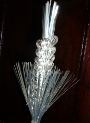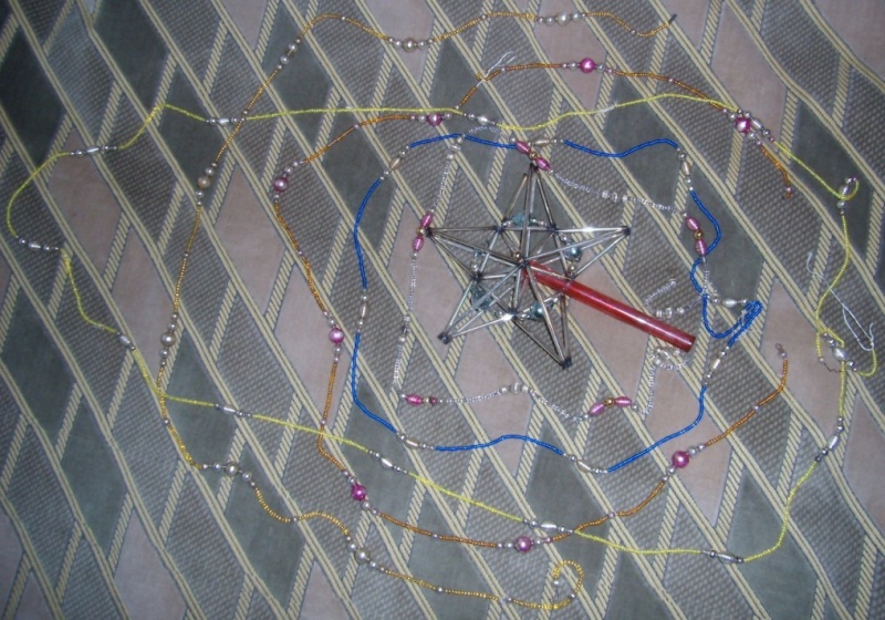 Это уже совсем древность - старинная звезда (последняя из уцелевших игрушек такого рода - их много было, пирамидки всякие, и др. объёмные конструкции), и бисерные бусы.