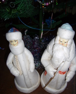 И у меня есть люди - дед со снегуркой, фиг знает из чего, бумага какая-то пропитанная, что ли... А старый дед был из папье-маше, помню его хорошо, но что-то с ним случилось, поэтому эти двое пришли на смену.