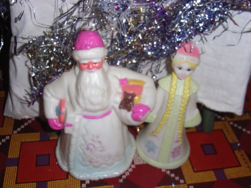 Еще были гофрированые фонарики типа китайских и вот такие дамы и пластмассовые елочки.