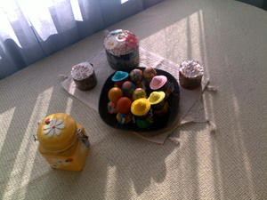 А у нас яйца просто разноцветные. И кулич покупной. И фотки нету.