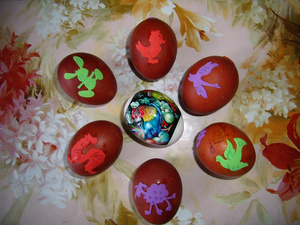 У меня пасха и куличи и яйца распмсанные по принципу: набежал на яйцо и разбросал щедрой рукой красочки и бусинки))