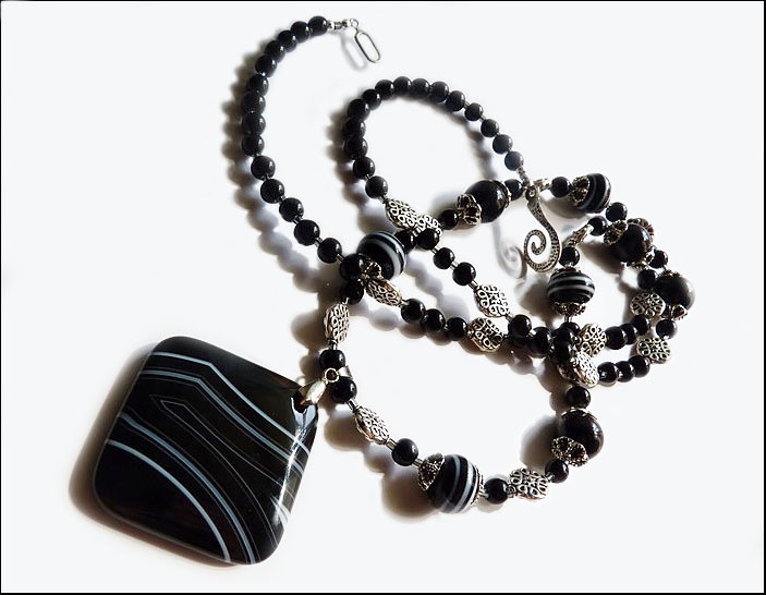 Натуральные:) И агат, и полосатые стеклянные бусины - ч/б.