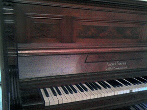 В общем, есть старое пианино, очень старое (конец 19 – начало 20 века), начало века, даже с подсвечниками еще, завтра собираются его выносить на помойку. Инструмент играет, но требуется реставрация. Сам бы забрал, но ставить некуда совершенно… В общем, надо вывести завтра, если кому-нибудь надо. Очень жалко бомжам на растерзание отдавать такую вещь.