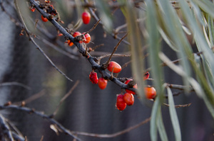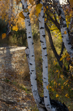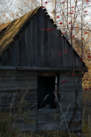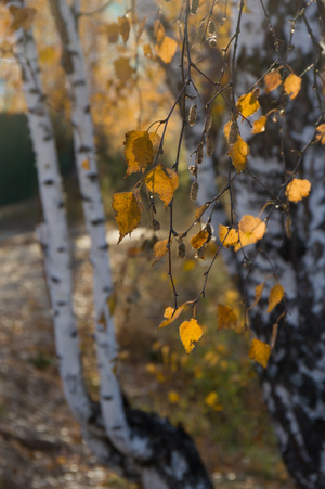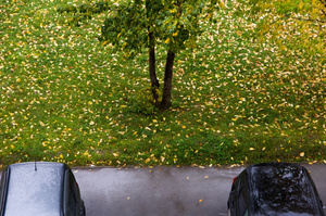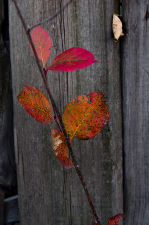Мне последняя доставила. Цветные листья на серых досках.