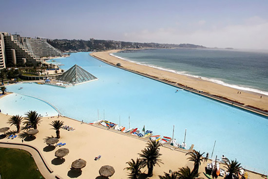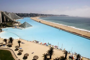 Вот самый большой, открытый бассейн в мире, находится в Чили. Возле него стоят несколько отелей. Из этого проекта, я так полагаю, нам лучше всего взять его пирамиду. Люди строят, если хотят...