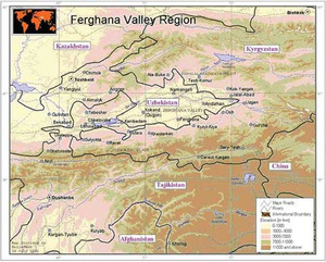 И что карта? Самое низменное место (см. на высоты), т.е. собственно Ферганская долина находится в юрисдикции Узбекистана