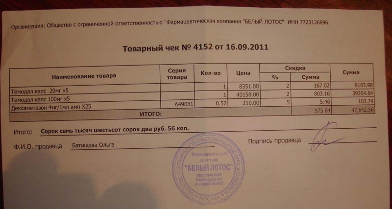 Вот ещё справка о назначении ТЕМОДАЛа онко-консилиумом и заключение из Мешалкина, а также чеки на темодал, который пришлось докупить до недостающей дозы на вторую химию (Министерство дало только 2х180 мг)