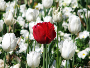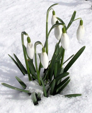 Сквозь снег пробиваются хрупкие цветы.