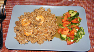 Мой финал. Что сказать. Вышло вкусно. Но не совсем по мне. По существу быстрый рецепт от Стич более мне подходит. А вообще мне раздельно больше нравится. Похожее в Тае я ел. Но рис отдельно, морепродукты отдельно мне и там более нра...