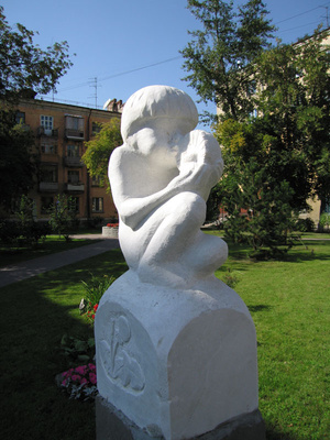 У меня тоже есть фотография барнаульской скульптурной группы. Правда, вышло так, что снимать пришлось против света, но уж больно ракурс оказался забавным. Хотя, в принципе, ничего забавного там быть не должно, по идее.