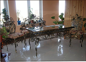 ковка у нас теперь там будет везде - от арок и уличных скамей, до мягких диванов со стеклянными спинками.