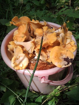 И ничо не косой! А грибочек за грибочком по одному лесочку, да по другому.) Еще ведро с лисичками есть. Сейчас с мамой вдвоем быстренько все обработаем!))