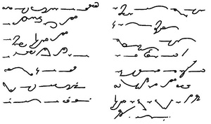 Елена Сергеевна прислала три образца, третий - ну совершенно неразборчивые каракули! Новерное это Пилюлины каракули, она ж у на тут доктор. Походу клятва Гиппократа.