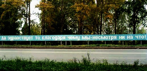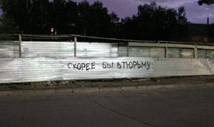 Еще на ватутина, между мечетью и мегой уже с пару лет, наверное, надпись: "Помни узников совести они боролись за тебя!"