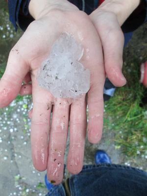 Самое забавное, что этот душераздирающий град был какой-то довольно узкой полосой или даже очагами, п. ч. возвращавшаяся домой насквозь промокшая матушка на промежуточной остановке не видела кучек льда, которые лежали (и до сих пор лежат) до и после нее.
