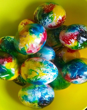 А если забыть и не сделать запасов луковичной шелухи, можно использовать пищ.красители.