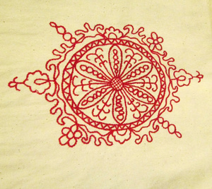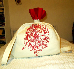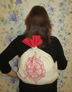 Вот мой вещьмешок, я научилась его завязывать. Вышивка конечно еще "от топора", но это же первая!!!