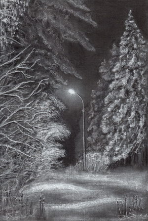 сугроб от Окуляра... стащила у него уголь из подписи, добавила пастельные белые мелки, бумагу, фиксатив и получился эскиз к (надеюсь) будущему полноценному полотну