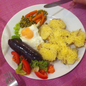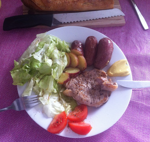 А в обед еще десерт был - печеное яблочко с медом и взбитыми сливками из тубы и с тонким гренком) И чай.