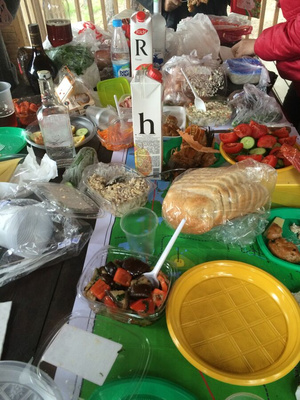 Еды тащим, такое ощущение, что каждый предполагает, будто кроме него никто ничего не принесет.Меня до глубины души потрясла Вивиан, которая специально принесла пакетики, чтоб тормозки по окончании раздавать. Опытный уже БЗшник...