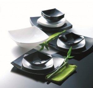 У меня просто сейчас все белое, большое, круглое и плоское, и бокалы большие высокие и очень тонкого стекла, люблю такие)
