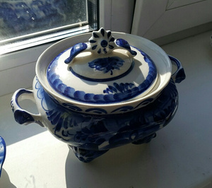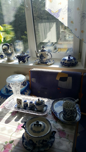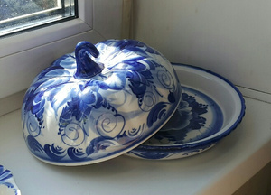 Я видела сервированный гжелью стол - как будто птицы райские прилетели, такая красота!
