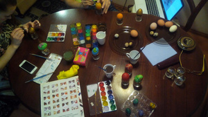 мы с сыном , ранее и с мужем, всегда яйца расписываем красочками - кисточками