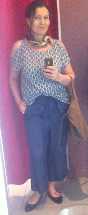 Какую блузку взять к этим кюлотам? Покуда взяла обе.