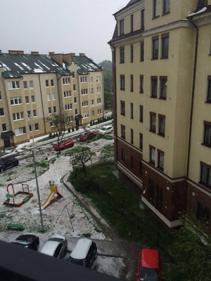 Вот у нас прошло полчаса назад СОБЫТИЕ, огромные градины падали на головы трудящимся Калиниграда !!!