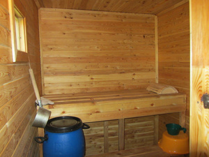 веником всю грязь сбивает на УррА ,а обмываюсь на улице под душем с подогревом.