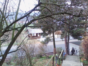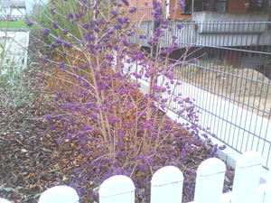 Ещё на паре фоток моя кормушка, собственноручно изготовленная и повешенная в момент сочувствия из-за вдруг возникших холодов в минус 4 ! ))) Но птицам здесь по барабану, они еле летают, ибо жирные и плевать хотели на эту кормушку. И красивый кустик в соседском палисадничке, очень нравится...