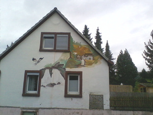 И в догонку..) Здесь в Гессене дома не принято раскрашивать, всё очень строго и аскетично, но например в Рейнланд-Пфальц, где мама живёт, домики очень жизнерадостные, со всякими башенками и цветными стёклышками и прочими завлекалочками, а в Баварии вообще народ на домах картины рисует.