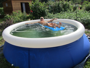 днём на дачах практически никого нет ...в бассейне вода хлорированная ,так я в летний душ просто без трусов хожу ! да повх! лето!!