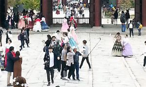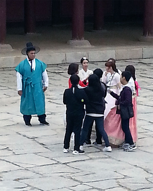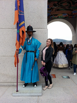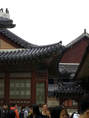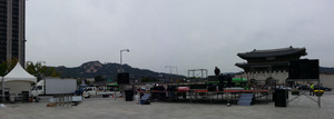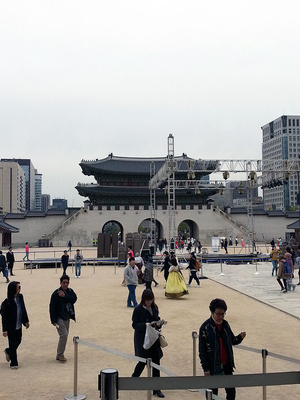 Чтоб пройти с Гванханмуна к Кёнбоккуну нужно просто перейти через проезжую часть по светофору. И сразу же оказываешься у ворот. Два раза в день, в 10 и 14 проводятся представления - смена караула. Она доступна для всех, этот участок можно посетить свободно.