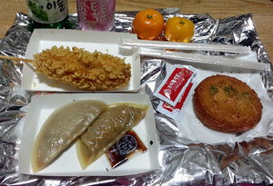 Соки-вкусняшки это само собой, немножко суля (суль – алкоголь), чай кофе в самых разных видах, зарядки, беруши, даже одноразовые упаковки кимчи и гидрофильного масла для удаления макияжа.