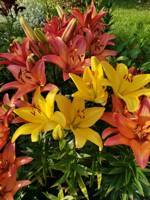 В саду влажно, но уже не так мокро как после дождя. Немного поникли цветы под тяжестью накопленной воды.