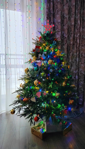 Лайфхак, как сфотографировать елку с включенной гирляндой - делайте это днем, ночью получается какой-то сине-зеленый аквариум