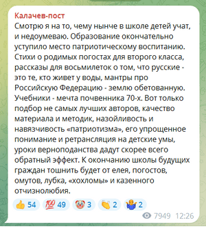 Заботиться нам надо не о патриотизме, а о том, чтобы, внося в жизнь тот свет, который есть в нас, изменять ее и приближать к тому идеалу, который стоит перед нами».