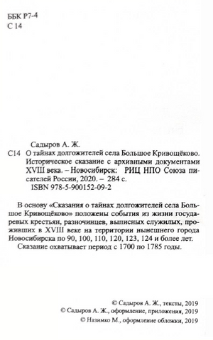 Садыров Анатолий Жамалиевич_О тайнах долгожителей села Большое Кривощёково.Историческое сказание с архивными документамиXVIIIвека_Новосибирск_РИЦ.НПО.СП.РФ_2020_284с.pdf
