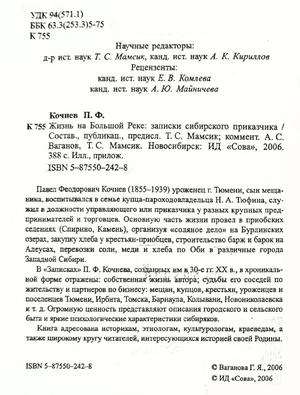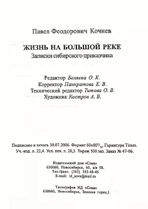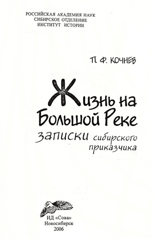 Кочнев Павел Фёодорович_Жизнь на Большой Реке,записки сибирского приказчика_Состав.,публикац.,предисл.Т.С.Мамсик_Новосибирск_ИД«Сова»_2006_388с.pdf