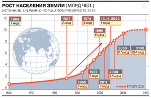 Судя по графику, за эти 100 лет в мире явно призошли масштабные изменения. Рост с 2 до 8 млрд
