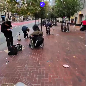 а вот сан-франциско город в стиле диско, с чем сравним?А что не так? Намусорено? Мусор только на правой стороне, возможно что-то разбрасывали специально. Вот и прохожие все что-то высматривают на земле. А так плитка, деревья - вполне миленько.