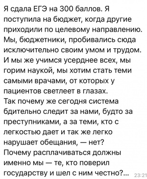 кто пошёл туда по фануВчера Госдума приняла в первом чтении законопроект об обязательных целевых договорах для студентов-медиков, обучающихся на бюджете. После того, как новость появилась в СМИ, стали приходить от студентов вот такие письма. Публикую как есть. Таких писем много, еще покажу (с)