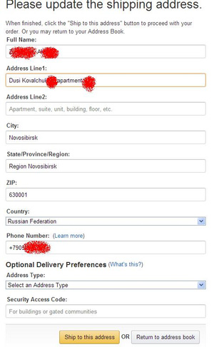 Что то не могу заказать игрушку из Амазона из за какой то ошибки в адресе доставки "IMPORTANT MESSAGE