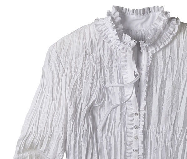 Блуза прилегающего силуэта с запахом, с отложным воротником, с завязывающимся по переду элегантным бантом. Рукава длинные расширенные к низу с манжетами. Ткань очень хороша,производства Италии.