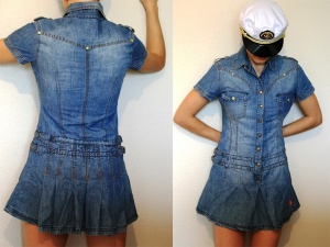 И еще вопросик. Платье джинсовое, короткое, с юбкой в складку где-нибудь есть?