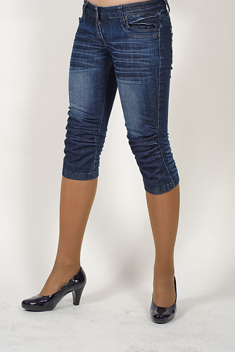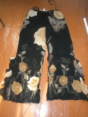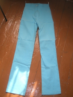 Тонкая плотная ткань, карманы впереди и сзади, книзу заужены.