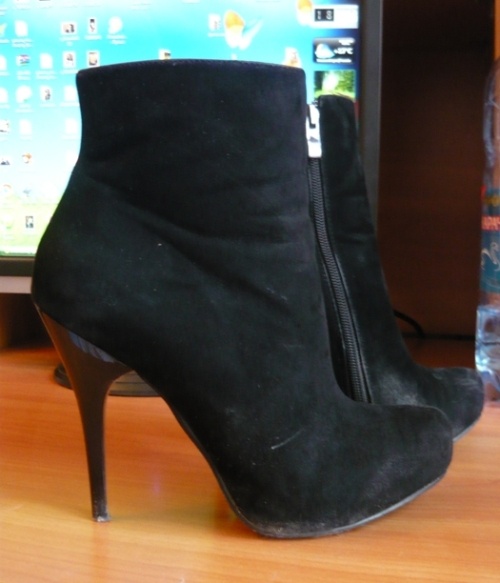 продам обалденные ботильоны.Размер 37.Материал:иск.замша.Каблук 11 см.Есть маленькая скрытая платформа внутри.Состояние на 4-.Покупала за 1900.Предлагайте вашу цену или обмен на хорошую обувь.Пишите в личку